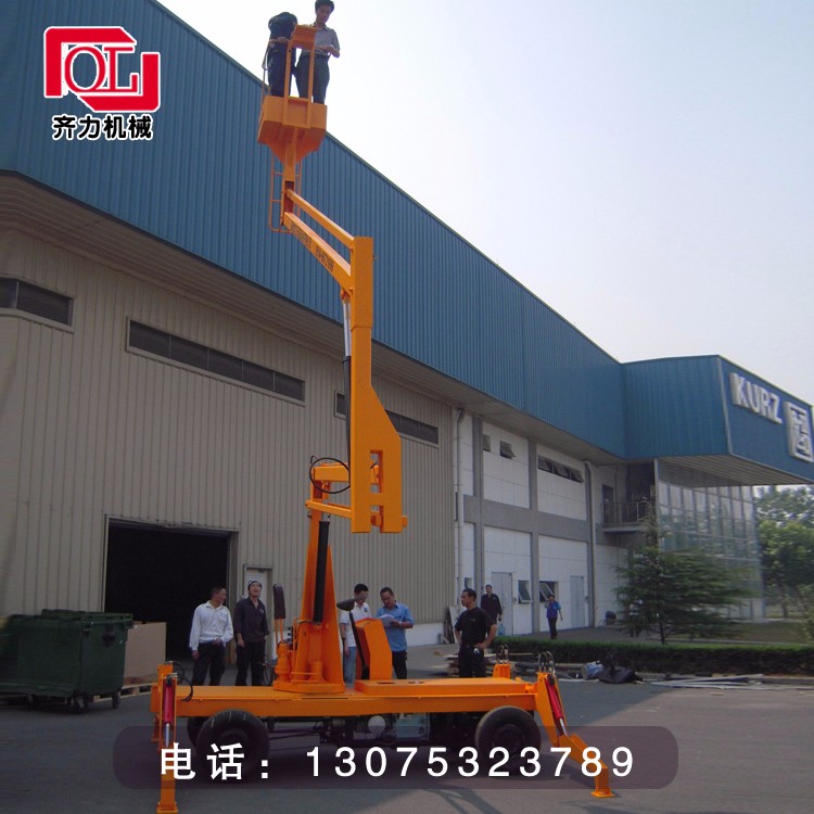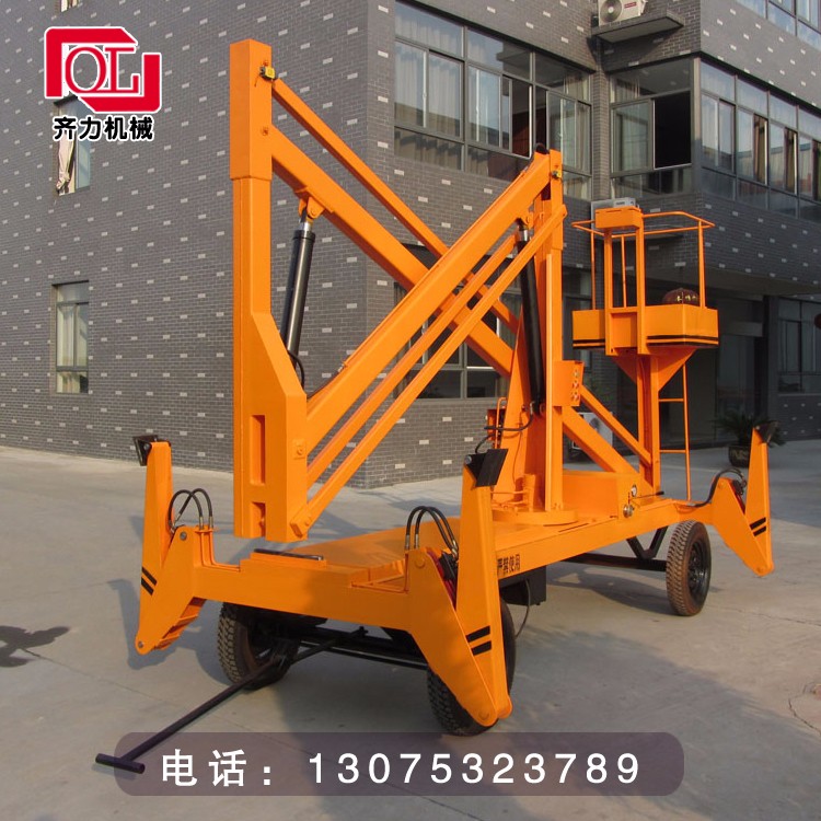 拖車曲臂式升降機:可以掛在汽車上,與汽車同步,適合野外高空作業(yè)。升降方式:1、用380-220V電源2、用電源不方便,可以用電瓶驅(qū)動升降。外型美觀,行走方便。